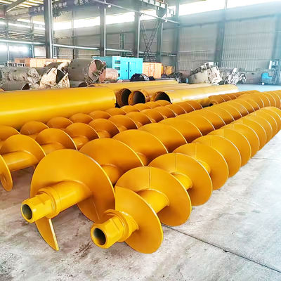Transportador de parafuso sem-fim personalizado em aço inoxidável com eixo helicoidal e lâminas. Adequado para transporte inclinado de materiais secos em pó ou pequenos grânulos, ou substâncias de fluxo livre.