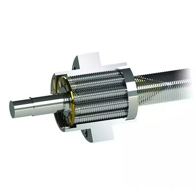 Parafuso de esferas planetário de alto desempenho com construção de aço com rolamento de fio laminado, com design de porca de flange personalizado para aplicações mecânicas superiores.